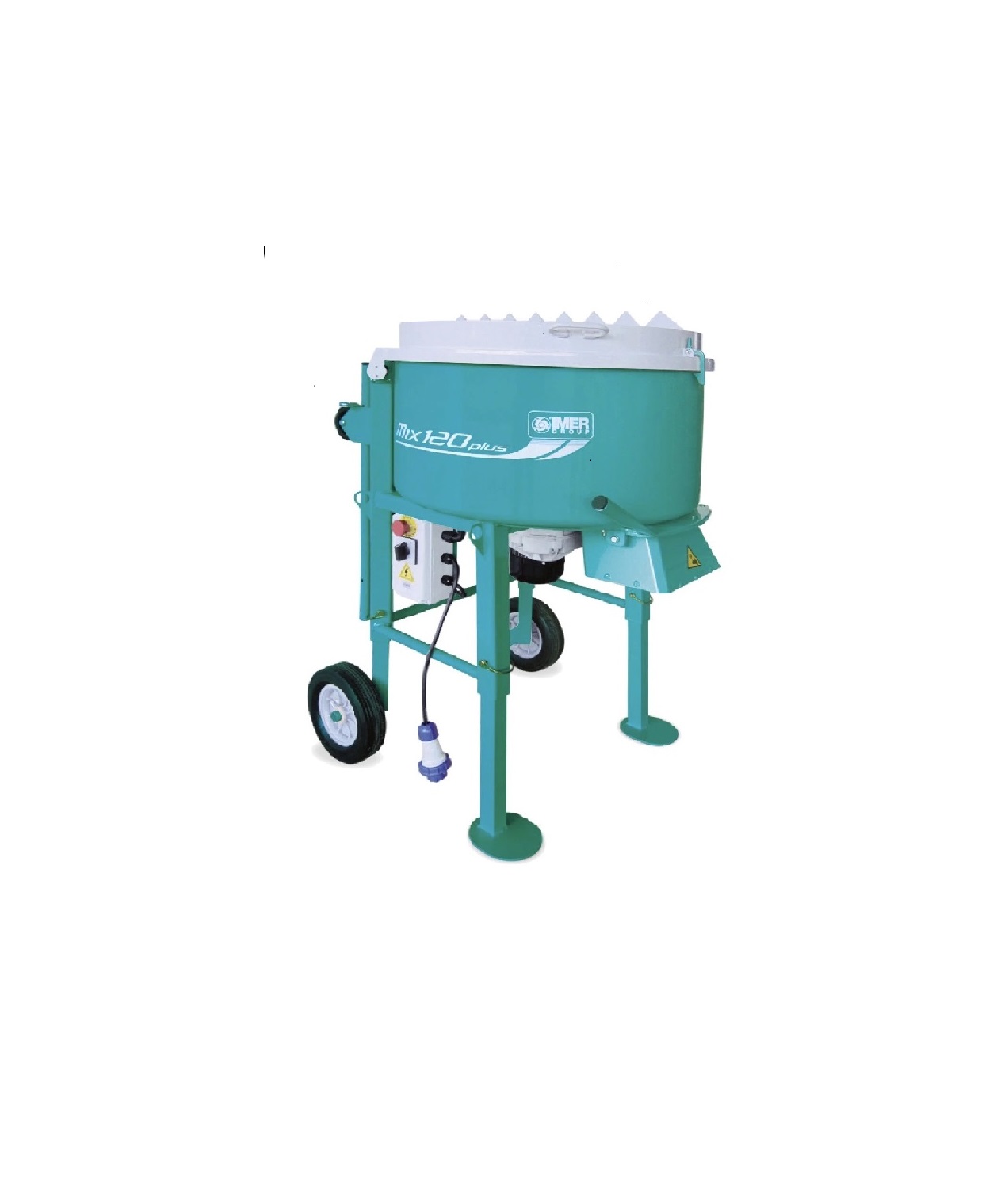 Våre Imer tvangsblandere tar veldig liten plass og kommer til steder der andre tvangsblandere ikke kommer til. De kommer med hjul for enkel flytting. Imer Mix 120 kommer med gitterlokk og sekkekniv.
