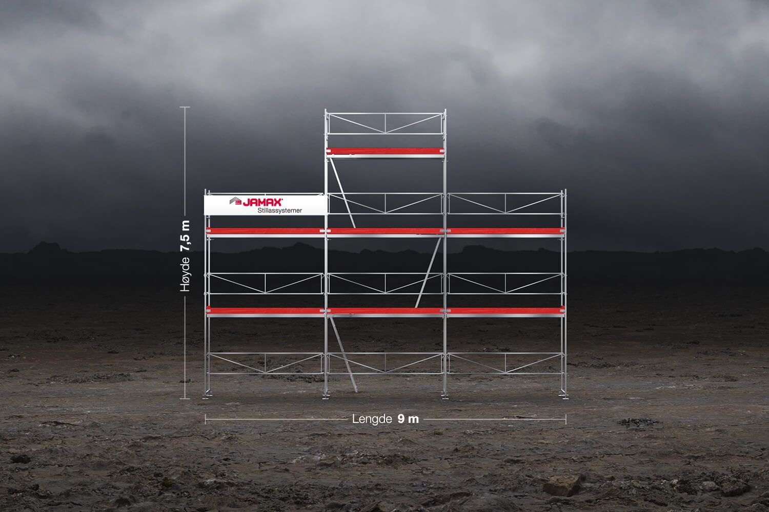 Dette er en mellomstor stillaspakke som passer like godt til proffbruk som privat. I mange tilfeller vil den dekke hele gavlveggen på et hus.